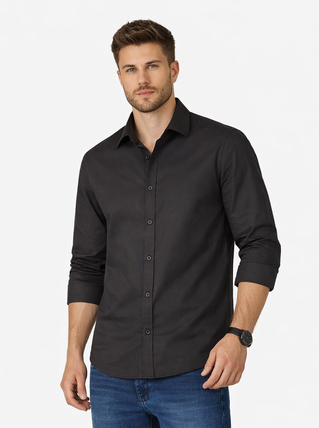 Camisa Masculina Manga Longa Algodão Tony Menswear Preta