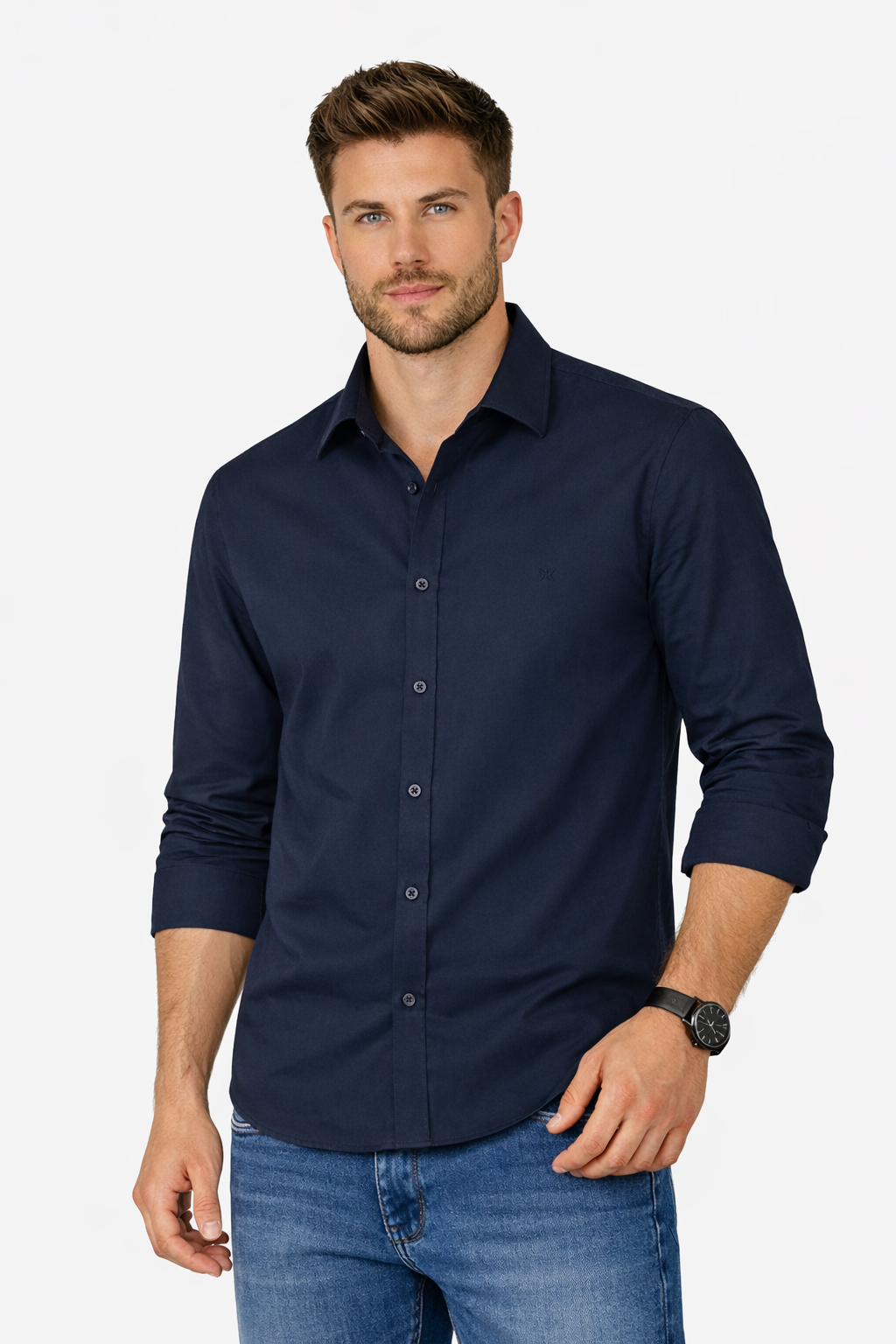 Camisa Masculina Manga Longa Algodão Azul Marinho